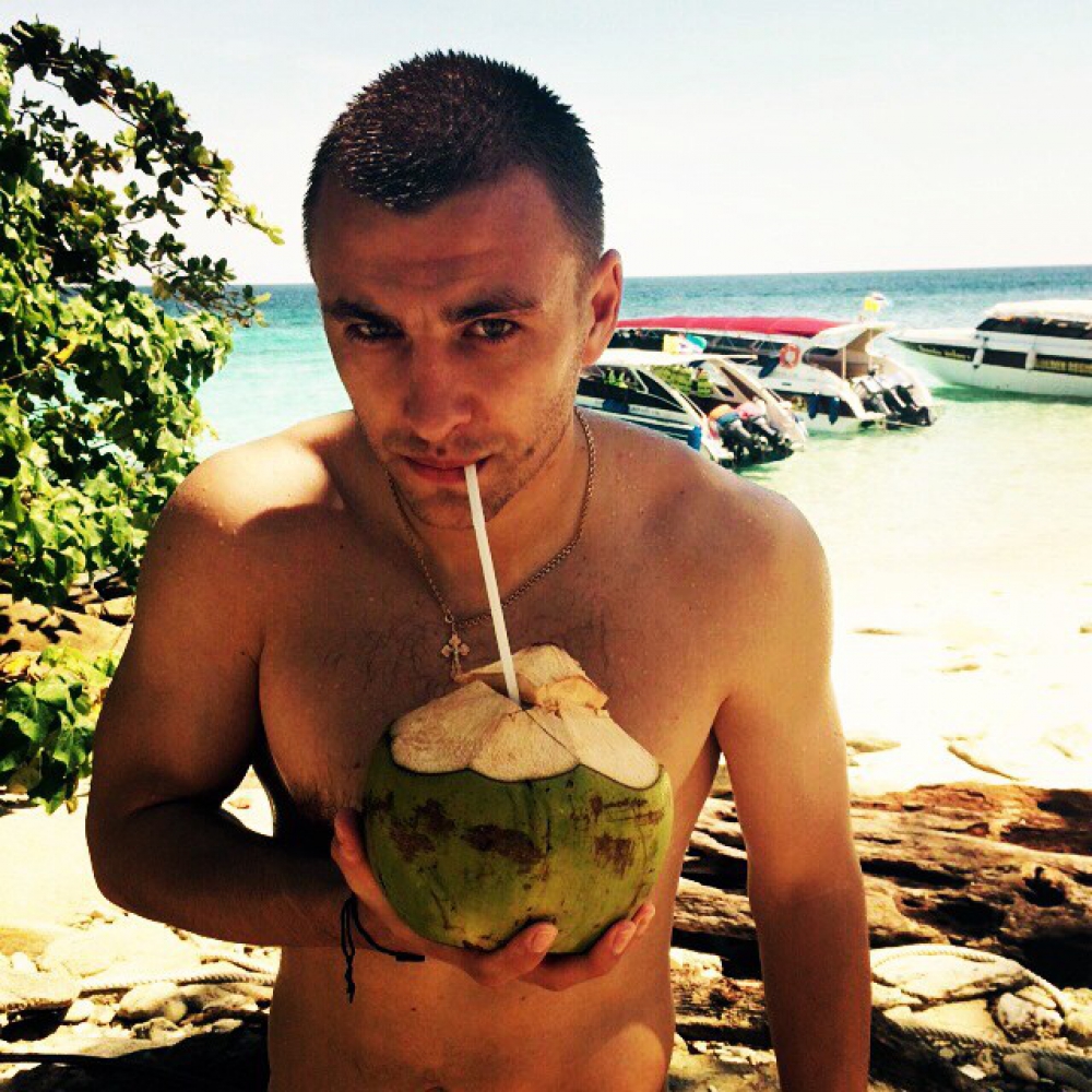 Алексей Щеткин ("Тараз") пьет экзотические коктейли и наслаждается морем и солнцем.