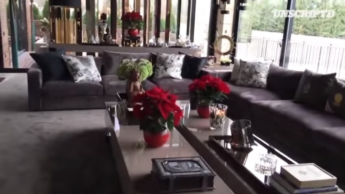 Затем Роналду демонстрирует гостиную с большим телевизором, по которому он обычно смотрит футбольные матчи.