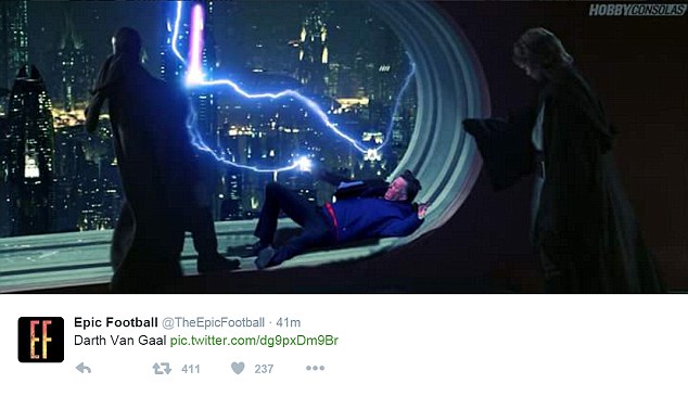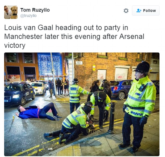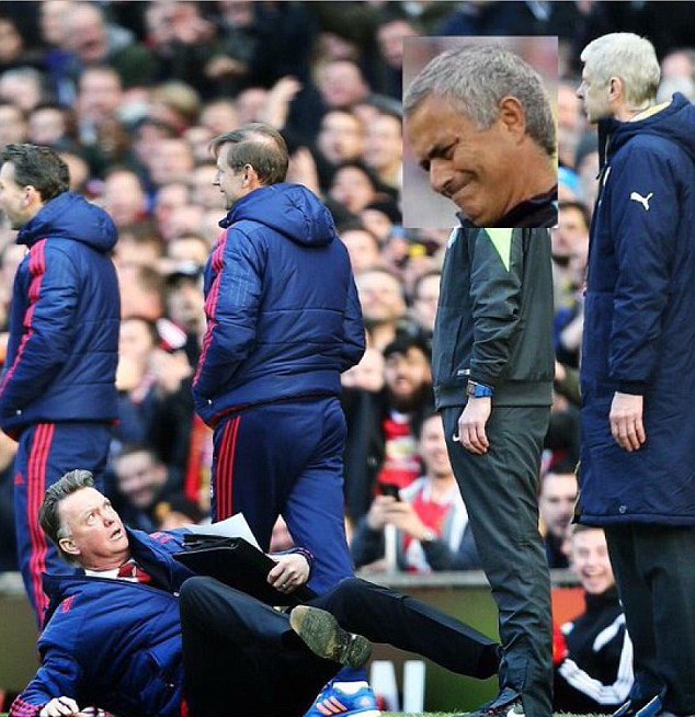 В одном из эпизодов игры 64-летний голландский специалист, апеллируя к резервному арбитру, картинно упал, пародируя симуляцию одного из игроков команды соперника. Таким образом, Ван Гал хотел убедить рефери, что штрафной в сторону ворот "МЮ" был назначен неправильно.