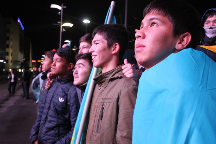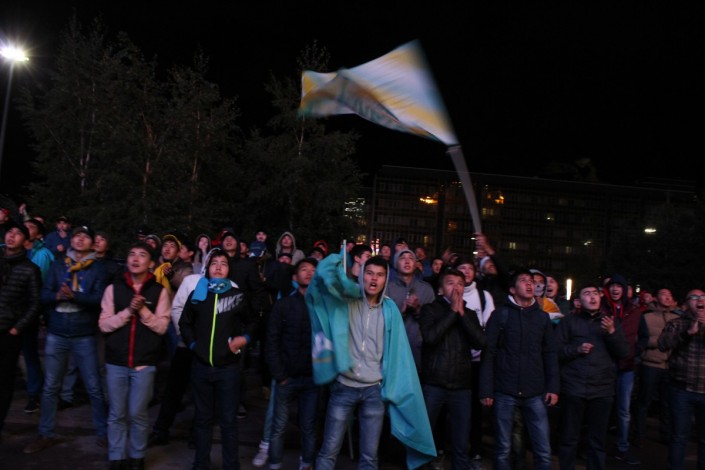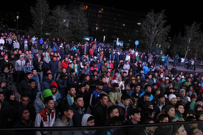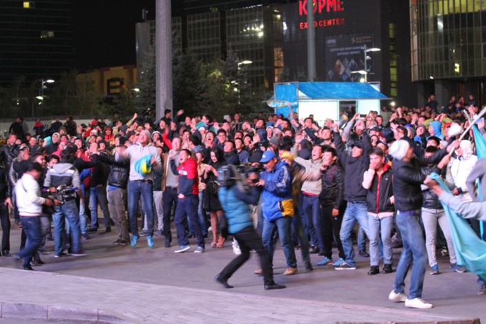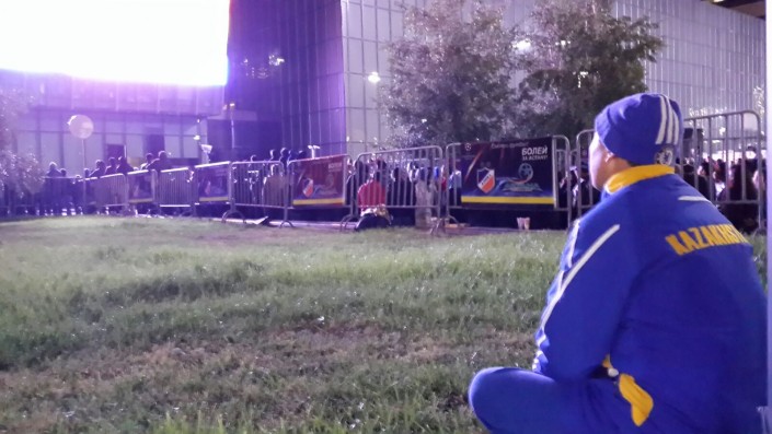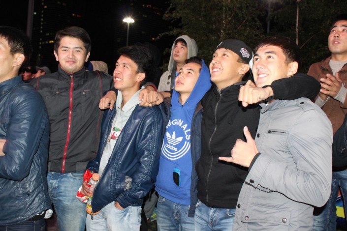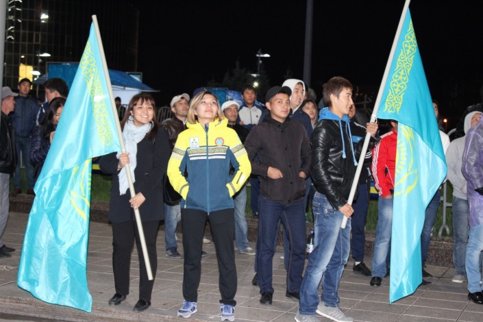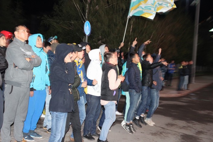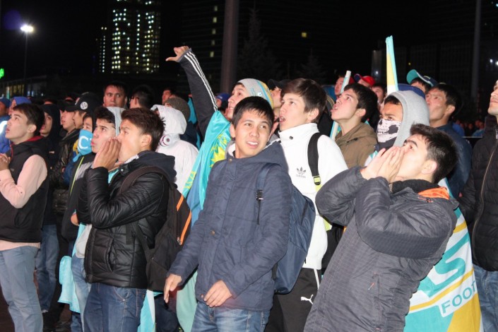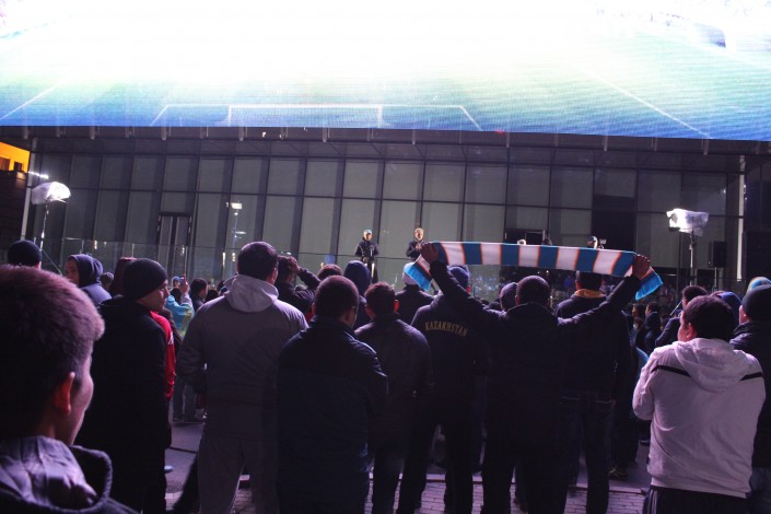 За игрой "Астаны" с кипрским АПОЭЛом столичные фанаты наблюдали на больших экранах "Казмедиацентра". Около трех тысяч болельщиков, несмотря на прохладную погоду и позднее время, собрались, чтобы вместе поддержать своих любимцев. Пришли поддержать команду аким Астаны Адильбек Джаксыбеков, олимпийский чемпион Александр Винокуров и актер Ануар Нурпеисов.