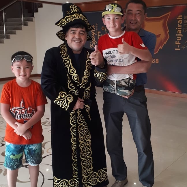 Семья родившегося без ног казахстанского мальчика Али Турганбекова подарила казахский чапан легенде мирового футбола Диего Марадоне. Али и Марадона встретились в ОАЭ, где аргентинец работает главным тренером клуба "Аль-Фуджайра".