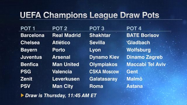 В первую корзину вошли: "Барселона", "Челси", "Бавария", "Ювентус", "Бенфика", "Пари Сен-Жермен", "Зенит", ПСВ.