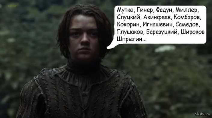 Продвинутые шутники помимо прочего вспомнили и знаменитый сериал "Игра престолов". В частности, эпизод с участием героини Арьи Старк, в котором она заучивала список тех, кого хотела убить.