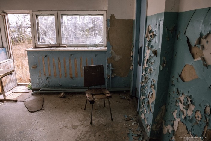 Этот стул мы нашли в тихом коридоре местной начальной школы. Она закрылась более семи лет назад. Учить оказалось некого. Осталось всего несколько детей. Их решено было отправить в интернат в соседний поселок.