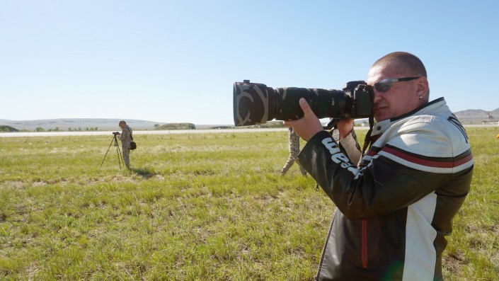 Известный казахстанский журналист, фотограф Григорий Беденко много лет проработал на телевидении. Сейчас он свободный художник, и чаще всего его можно увидеть с фотоаппаратом на каком-нибудь авиасалоне или авиашоу мира. В этот раз Григорий снова приехал на авиабазу в Талдыкоргане, чтобы еще раз поохотиться на Су-30СМ.