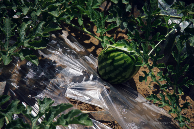 "На одном и том же месте арбузы выращивать нельзя, земля должна "отдохнуть" не меньше пяти лет. Поэтому каждый год меняем участок. Лучше всего арбузам подходит песчаная почва. В этой местности, на берегу водохранилища, она именно такая. Поливаем их каждые два-три дня", - делится знаниями Аян.