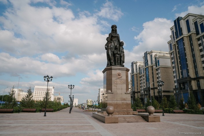 Со стороны улицы Туркестан установлен монумент "Қазақ еліне мың алғыс" - "Тысяча благодарностей казахской земле".