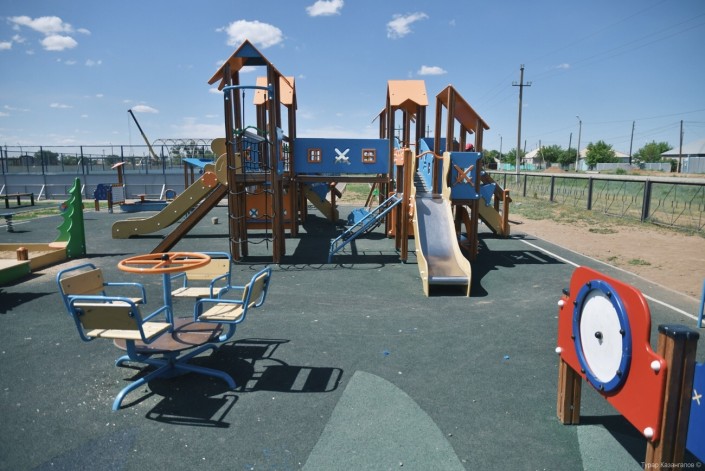 "А вон, видите, строится еще современный ФОК (физкультурно-оздоровительный комплекс)", - показывает аким, прибавляя, что в поселке уже работает школа дзюдо.