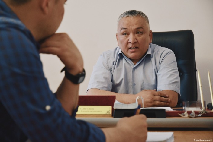 Даулет Амангельдиевич на служебном автомобиле объезжает поселок и заодно показывает нам, как устроен этот населенный пункт. "Водитель приболел. Но население любит, когда я езжу. Пока водителя нет, я в 6 утра встаю, приезжаю на работу, местные жители как раз коров отводят, интересно же: поздоровался, постоял, поговорил с ними", - отмечает аким.