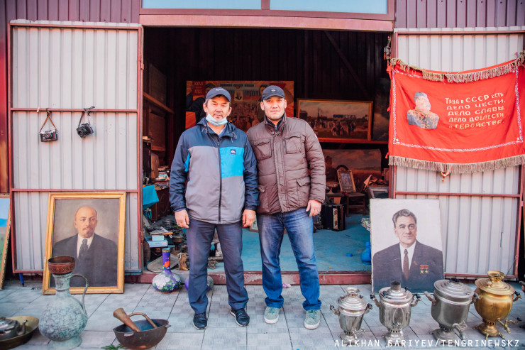 "Я здесь торгую уже третий год, — рассказывает Жанболат Байгалиев, мы тут вместе с напарником Аспандияром работаем. В основном приходят те, кому за 40-50, говорят, могут что-то купить ради воспоминаний об отце или деде. Людям интересна продукция из фарфора, бронзы, винтажные вещи. А сам я по профессии юрист, но семь лет назад мне попался на глаза советский значок, и я заинтересовался. Теперь вы сами видите, до каких масштабов все разрослось.