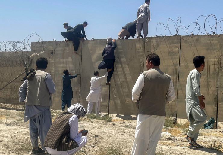 Мужчины пытаются пробраться в международный аэропорт имени Хамида Карзая в Кабуле. Фото Reuters