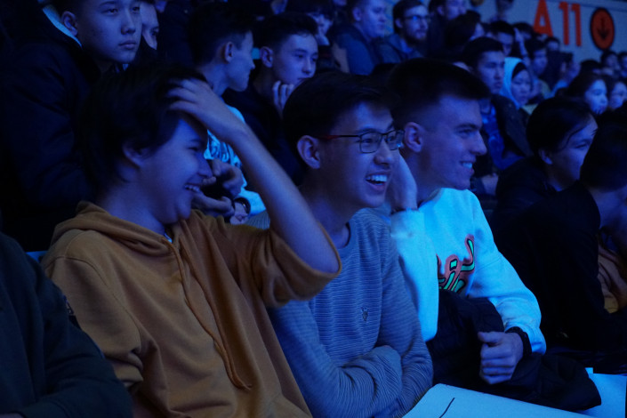 Трибуны Дворца единоборств Jekpe Jek были заполнены молодыми людьми. Это фанаты команды Syman Gaming пришли поддержать своего любимого игрока Рамазана Ramz1k Башизова.