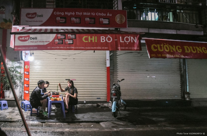 Наш собеседник вряд ли видел вечернюю жизнь Вьетнама, потому что он сказал, что в этот раз у них был достаточно жесткий график и они двигались по программе, так что прогуляться по городу им не пришлось. Но вообще, типичная вечерне-ночная жизнь Ханоя выглядит вот так.