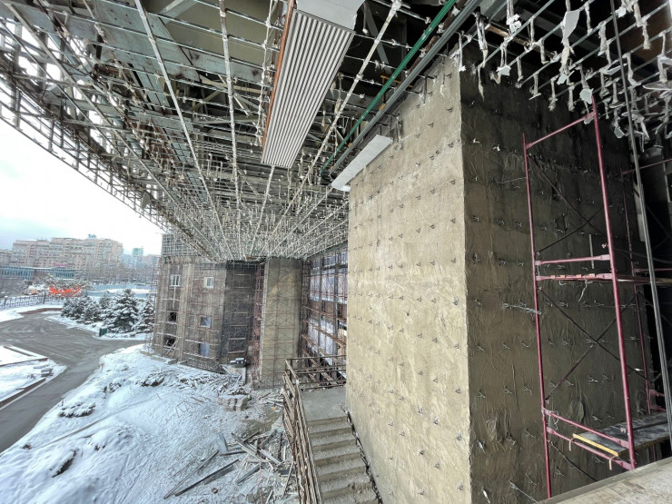 "Самым опасным является повреждение несущих конструкций второго этажа. Этот факт поставил под вопрос дальнейшую жизнеспособность здания. Разработчик проекта - французская компания Inter Art Etudes - обратился в Управление делами Президента с предложением безвозмездно проконсультировать по вопросам восстановления здания. Техническое обследование объекта проводит Казахстанский многопрофильный институт реконструкции и развития. Эксперты КазМИРР установили, что замена несущих конструкций все же возможна без ущерба для безопасности и сейсмоустойчивости", - добавила инспектор.