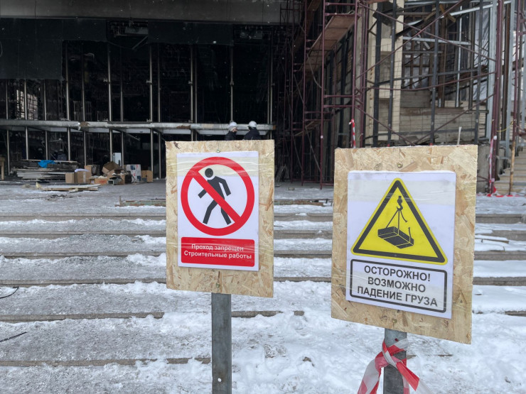 Рядом выставлены предупреждающие указатели.