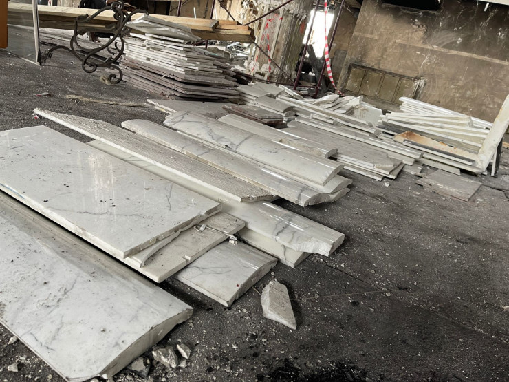 Уцелевшую часть мрамора также снимут, а вместо него будет применен другой стройматериал. Возможно, это опять будет мрамор.