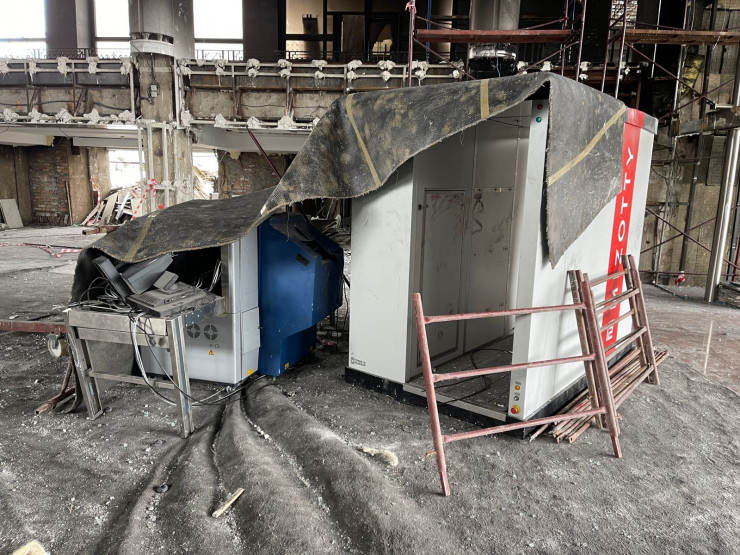 Посетителей раньше проводили через третий уровень досмотра - через этот рентген-аппарат. Сейчас он не работает. Мародеры повредили и его.