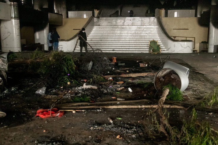 Судя по кадрам, в дни погромов здесь творился настоящий хаос.