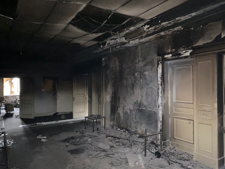 В здании до сих пор сильно пахнет гарью.
