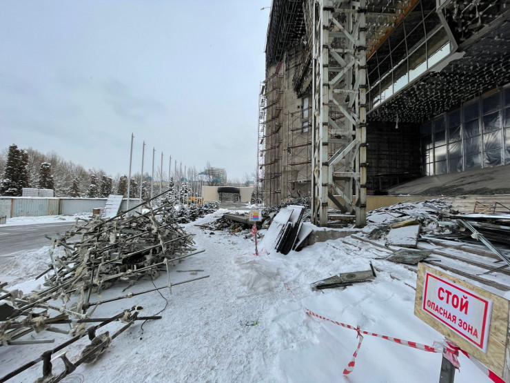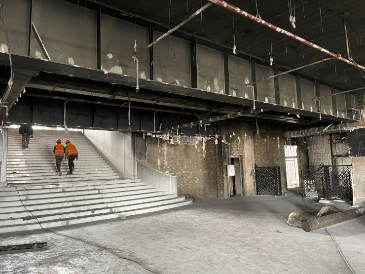 Сейчас ведутся активные работы по очистке здания от пришедших в негодность материалов. Работы за свой счет вызвалась проделать частная компания. В Управделами Президента не стали препятствовать такой инициативе.
