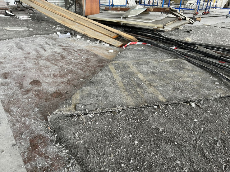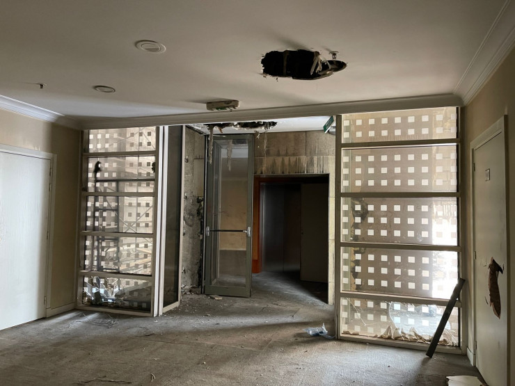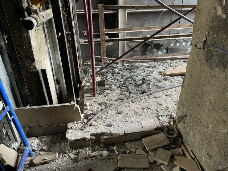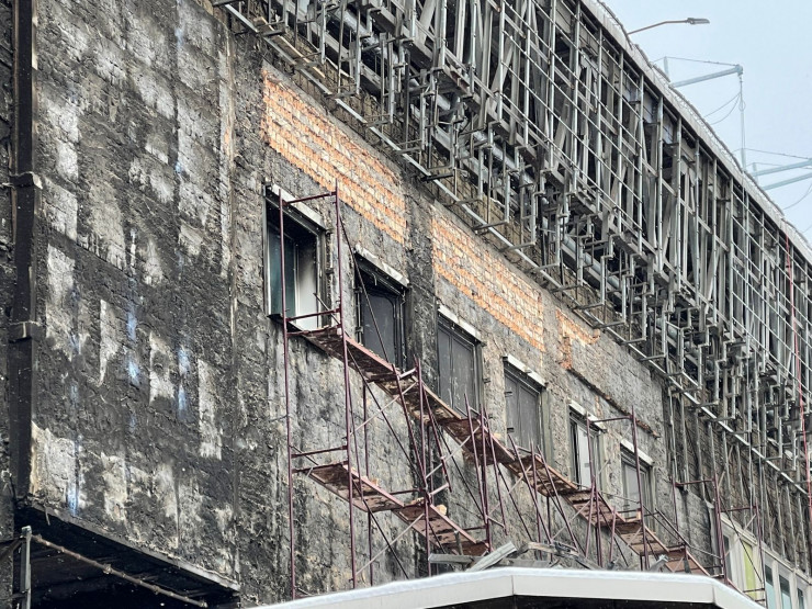 Здесь эксперты проводят повторное обследование здания, чтобы установить, насколько прочна его конструкция.