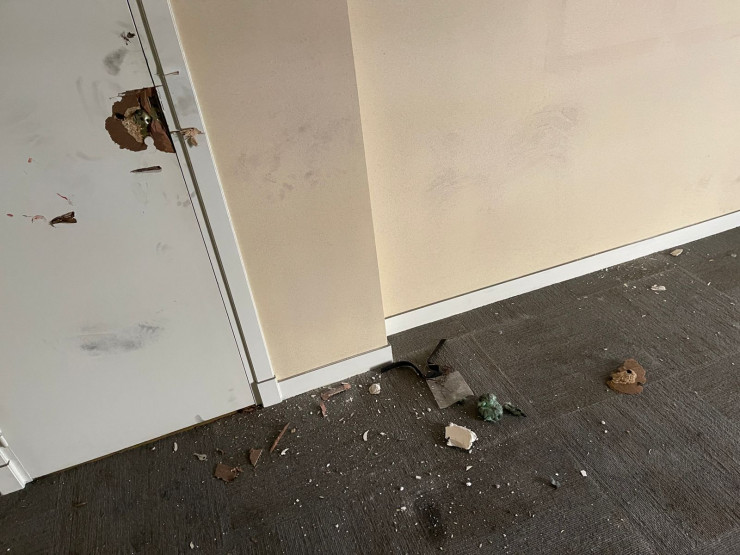 Также на месте видны следы взлома дверей.