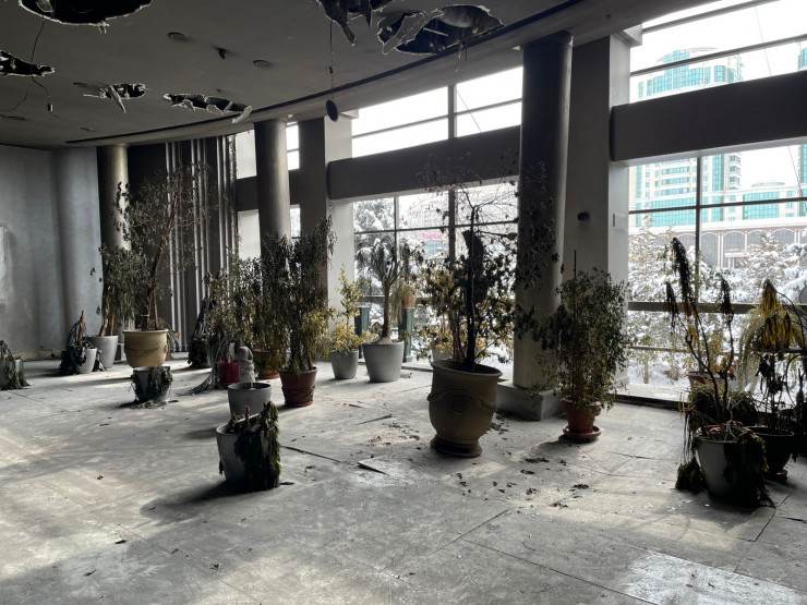 По словам инспектора УДП Бахыт Абдыкаликовой, кабинеты были либо разграблены, либо сожжены. В первые дни осмотра резиденции не удалось найти какие-либо ценные вещи - все уничтожено или похищено.