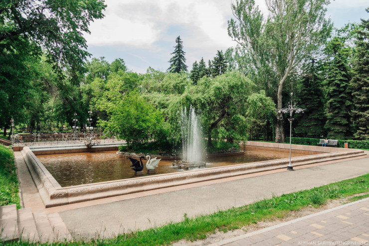 Бұл 1960-1970 жылдары Алматыда танымал болған "Аққу" кафесі. Оны барлық алматылық жақсы көретін. Айналасында аққулар жүзіп жүретін. Бүгінде кафе жоқ, оның орнында фонтан мен кафе туралы ескерткіш - қос аққу ғана қалған.