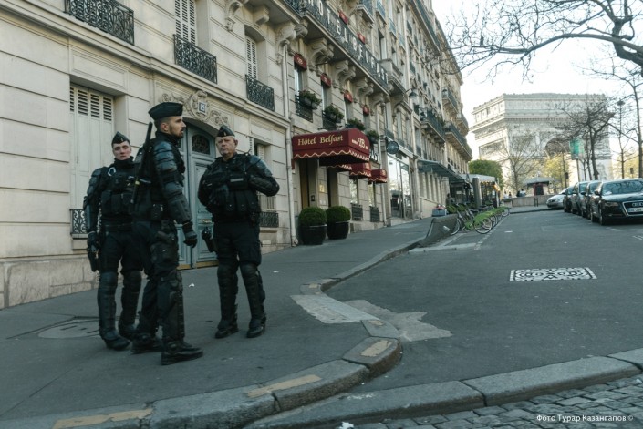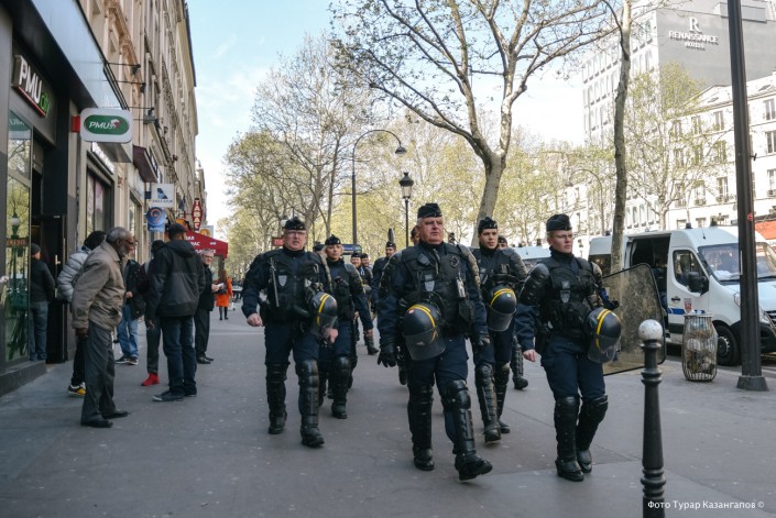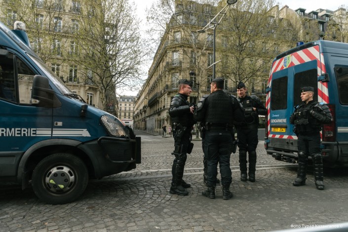 Ранним субботним утром повсюду дежурят полицейские и жандармы, экипированные с головы до ног.