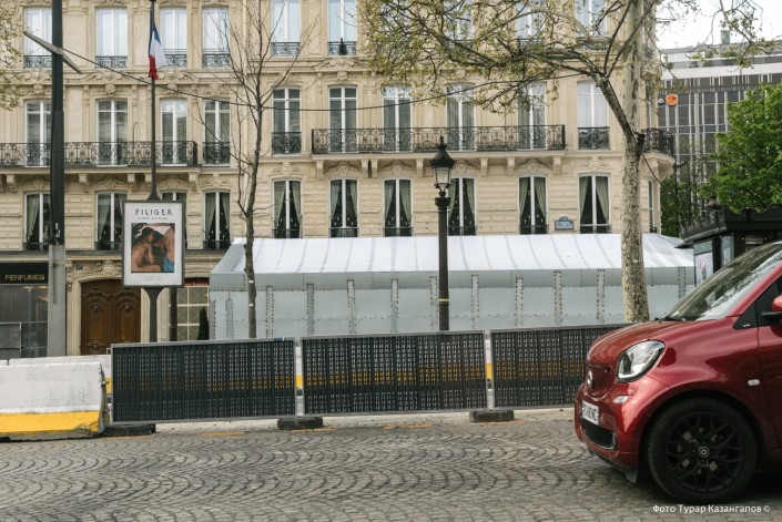 В декабре прошлого года в этот популярный туристический объект вторглись протестующие и устроили там погромы. Теперь арка под надежной защитой. В марте произошли погромы и пожары на Елисейских полях.