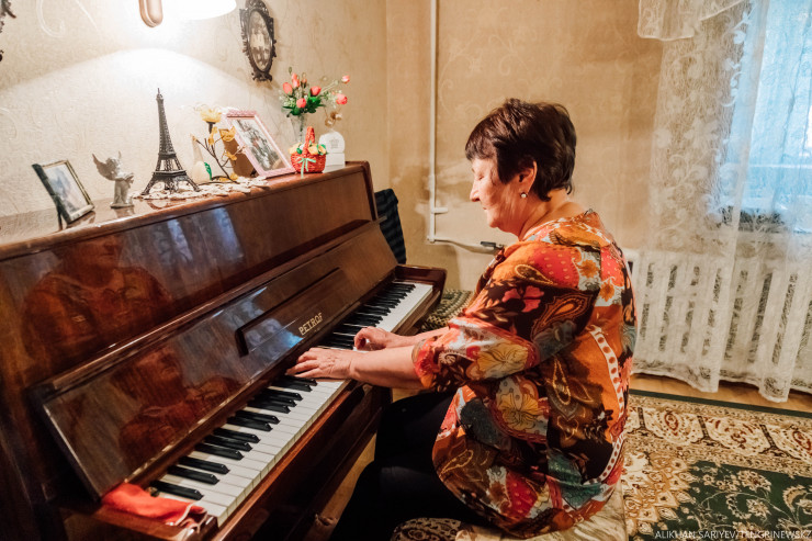 Перед отъездом мы заглянули в гости к Лилии Григорьевне. Ее муж когда-то работал директором Дома культуры, а она - заведующей в музыкальной школе. "Мы с мужем переехали сюда в 1967 году. Нам говорили про совхоз-миллионер, что там закрытое производство и туда очень трудно попасть, но мы люди искусства, а таких людей, наверное, там не хватало. Когда сюда приехали, я думала, ну на год останемся и уедем, и вот это продолжается уже 54 года".