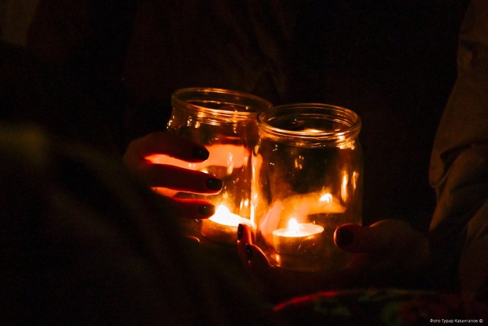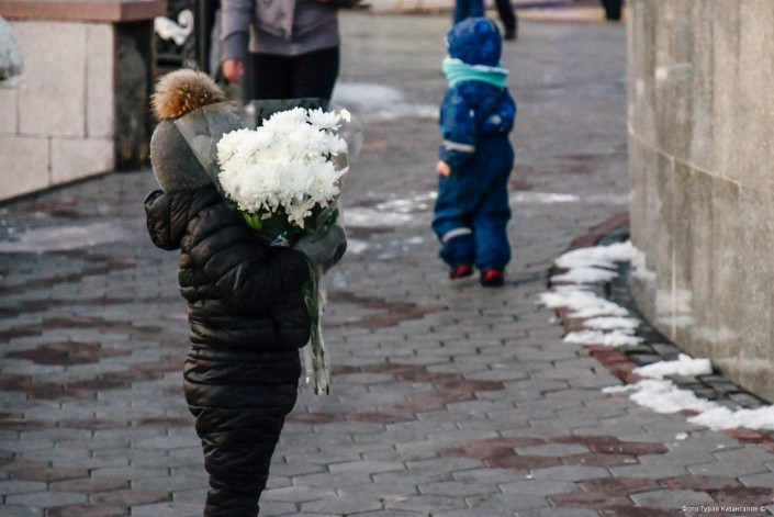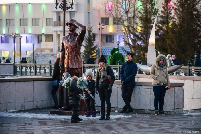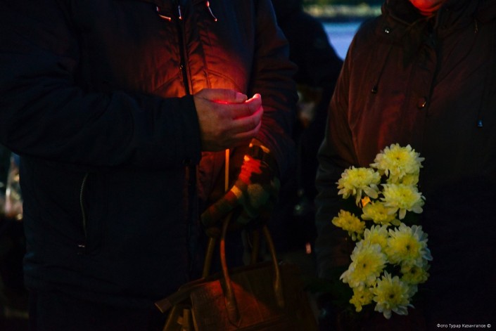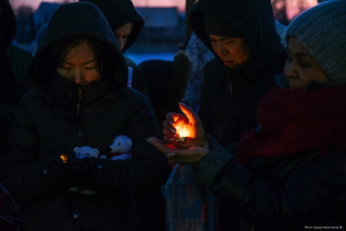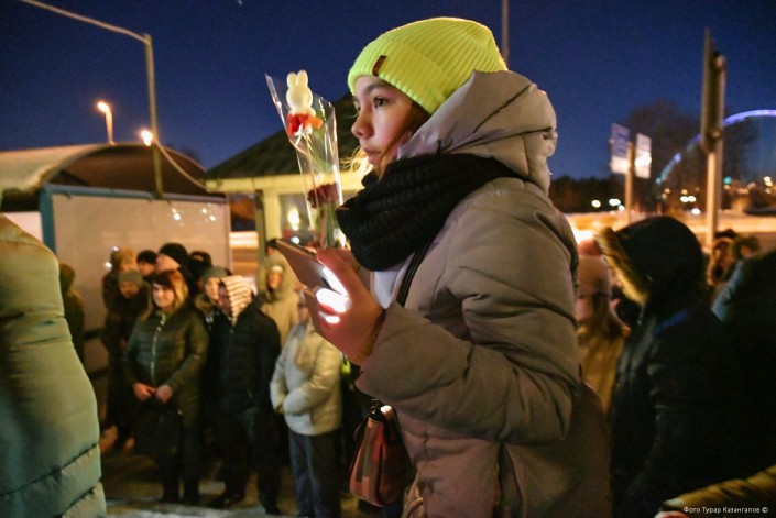 С каждой минутой людей становилось все больше и больше. Кто-то решил поставить свечку и цветы на ступеньках возле памятника Кенесары. И тут же его примеру последовали все остальные.