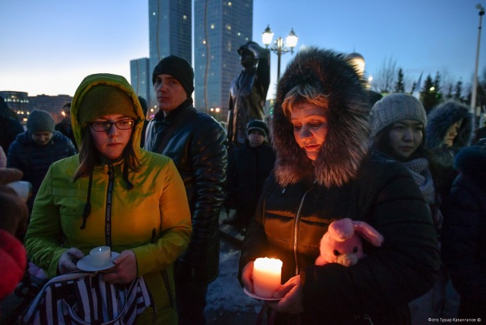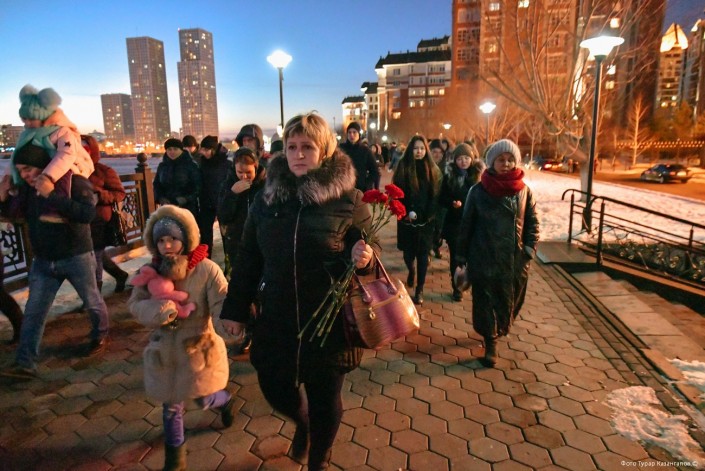 Люди разных возрастов, абсолютно разных национальностей и может быть разных убеждений решили прийти к посольству Российской Федерации в Астане, чтобы почтить память погибших при пожаре в ТРЦ в Кемерово. Ответ на вопрос, что их побудило прийти в этот не самый теплый мартовский вечер к месту общего сбора, был найден нами почти сразу. Две женщины - одна средних лет, другая постарше говорили про безопасность в торговых центрах столицы. "Да, все мы ходим в торгово-развлекательные центры. Именно поэтому все мы в этот день здесь", - читалось в глазах пришедших бабушек и дедушек, мам и пап, сыновей и дочерей. Как в Астане прошло организованное шествие в память о людях, погибших при пожаре в российском городе, - в репортаже Рената Ташкинбаева и Турара Казангапова.