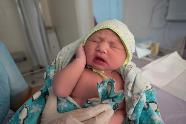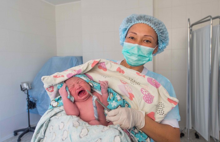 И вот в руках Актолкын маленький живой пищащий комок. Это - девочка.