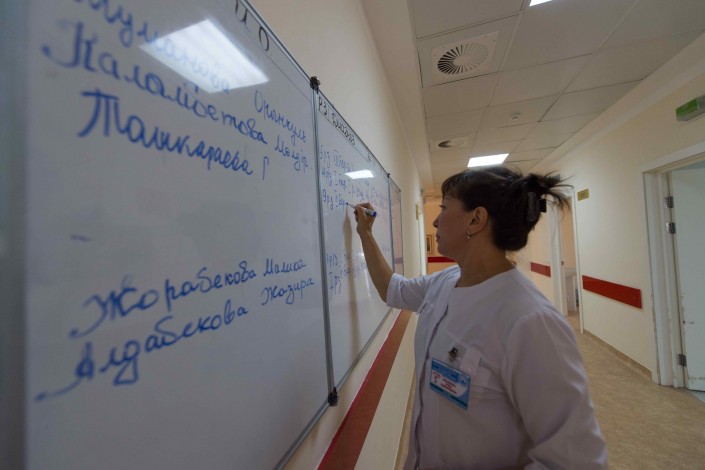 8 утра. Актолкын Амирова приняла смену. На специальном стенде - информация о поступающих в отделение женщинах.