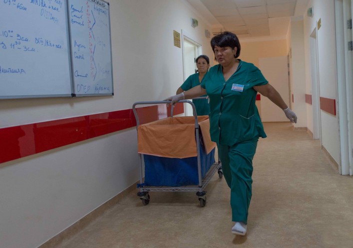 Едва Актолкын Амирова успела заполнить журналы – санитарки готовят новую палату для следующей роженицы.