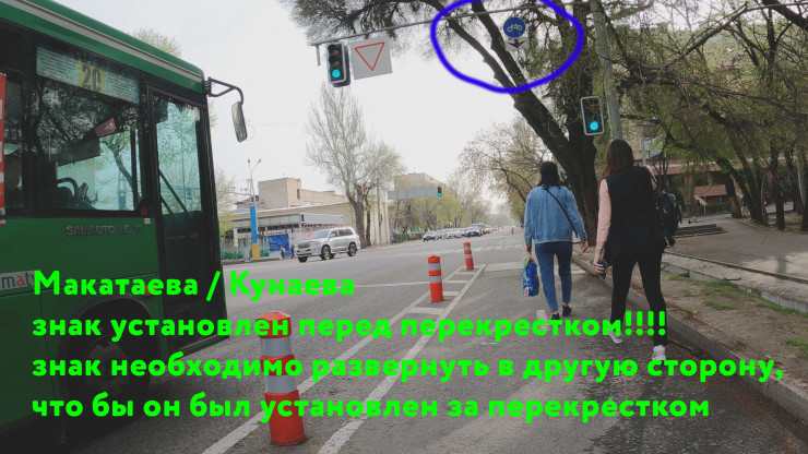 "Перед Манаса нужно убрать крайнюю правую полосу, которая появляется за 30 метров до перекрестка. До перекрестка три полосы прямо. После перекрестка - две полосы прямо. Из-за этой третьей полосы автомобили выезжают прямиком на велополосу и едут по ней, образуя пробку на перекрестке.
