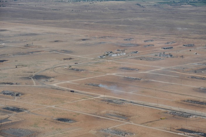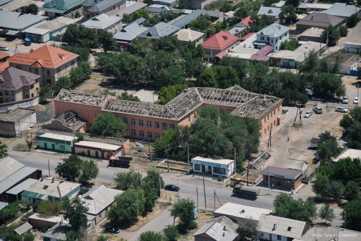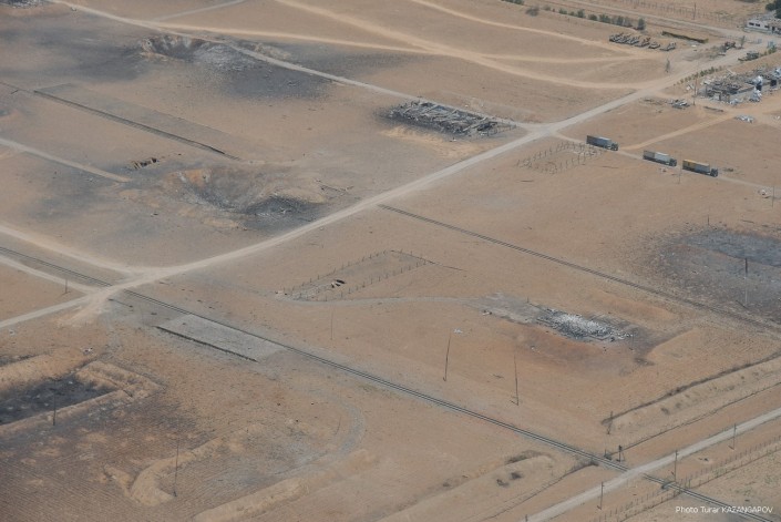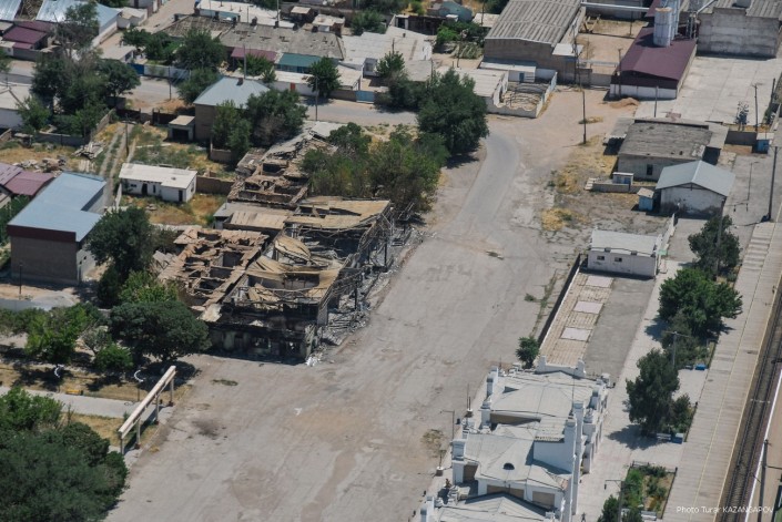 Так сейчас выглядит город Арысь, где 24 июня взорвались склады с боеприпасами. Борт министерства обороны совершил плановый облет окрестностей Арыси. Фотокорреспонденту Tengrinews.kz Турару Казангапову удалось сделать несколько эксклюзивных кадров с высоты.