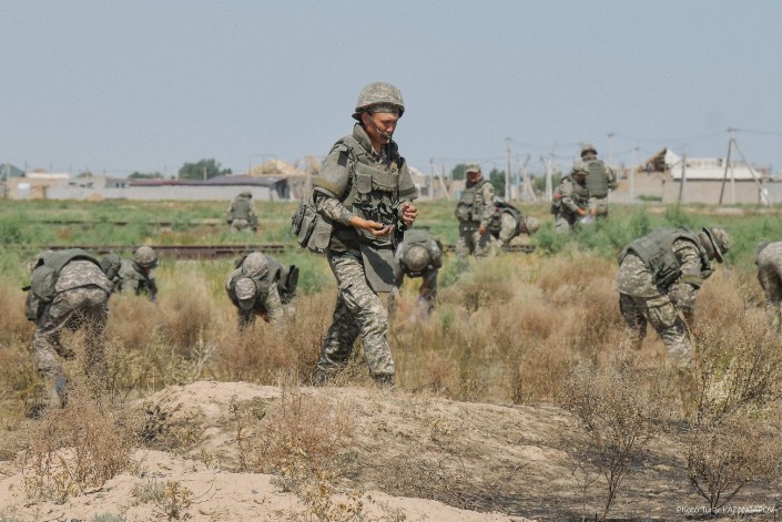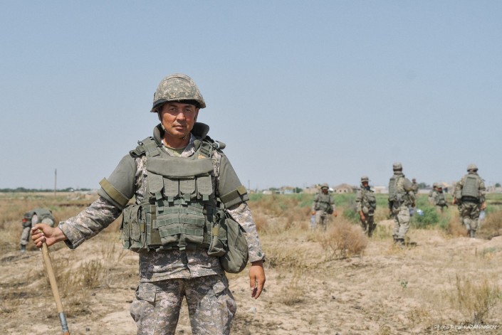 Министр обороны Нурлан Ермекбаев провел обход территории, проверил работу саперов и отправился в в административную половину воинской части.