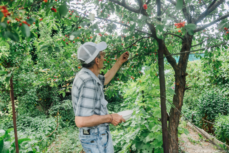 Пока Людмила рассказывает нам свою историю, Александр постоянно шутит и хлопочет в саду.