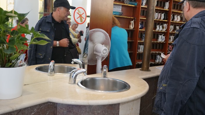 Что касается нас, то мы успели лишь осмотреть курортный городок, не пробуя воду из источников. Нас предупредили, что пить из любого "кранчика" чревато последствиями. Ведь только в этом городе на поверхность выходит 12 целебных источников, плюс 13-й - концентрация полезных веществ в нем намного ниже, но по вкусу вода напоминает газировку. И, к примеру, новичкам не рекомендуется пить воду прохладной, так как реакция будет моментальной и вам придется бежать в туалет.