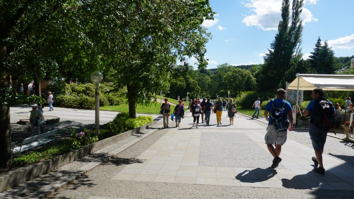 После Праги город непривычно тихий. Здесь нет круглосуточных магазинов - работают только до восьми, в пятницу в чешских городах, как правило, короткий день, работают в лучшем случае до пяти вечера. Пожилые пары размеренно прогуливаются вдоль набережной, попивая воду из специальных кружек, которые придумали именно здесь.