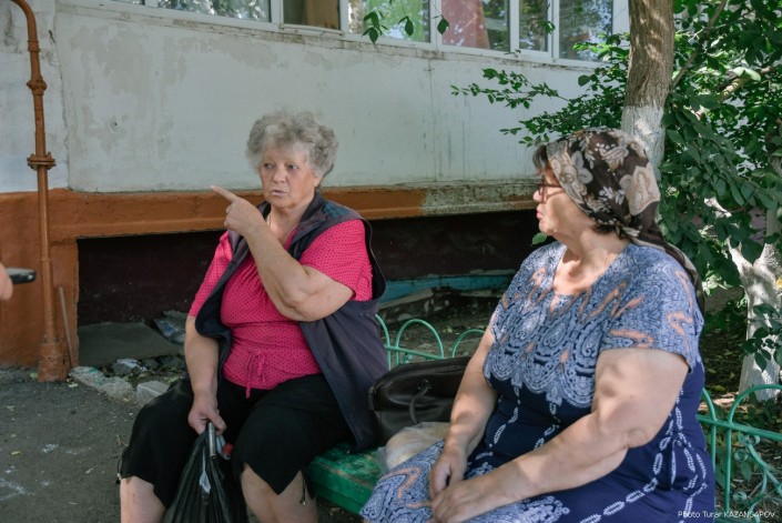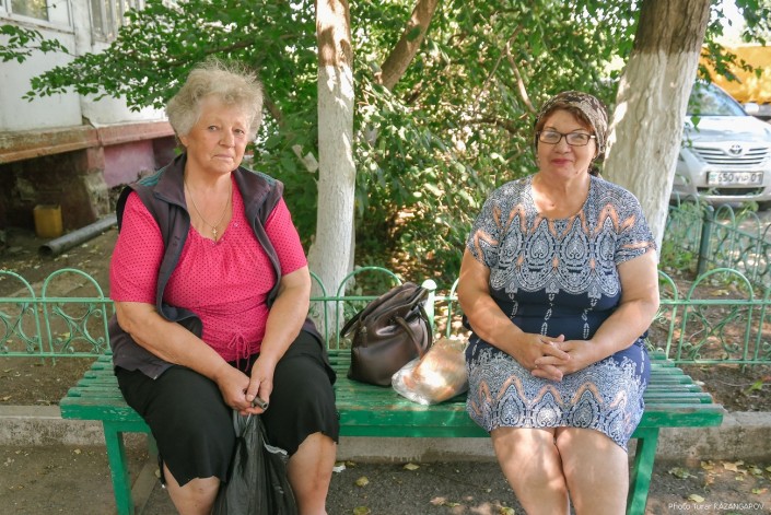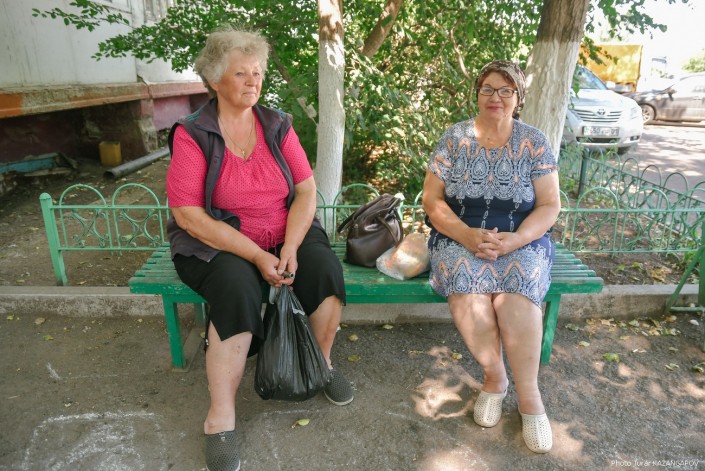 Рядом с ней на лавочке сидит еще одна жительница этого дома - Клавдия Степановна Круглик (справа). Правда, в отличие от Ирины Петровны, живет в этом доме она сравнительно недавно. Сама она приехала из деревни Киевка, которая находится неподалеку от Атбасара. "Сама я украинка, но Украину в глаза не видела", - признается женщина.