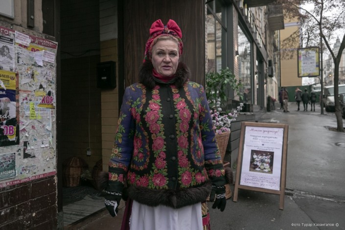 Возле фирменного магазина знаменитой украинской кондитерской фабрики сидит бабушка. Она предлагает прохожим купить розу. Но роза эта не обычная, а кованая. Бабушка рассказала, что такие вещицы делает ее супруг-кузнец.