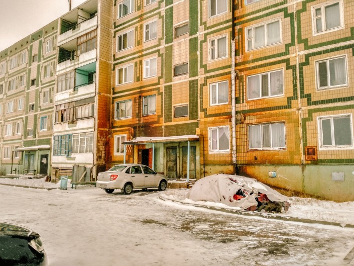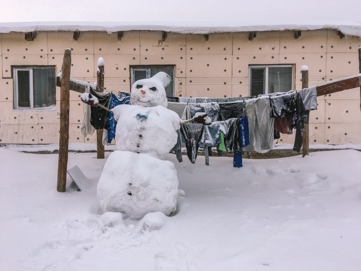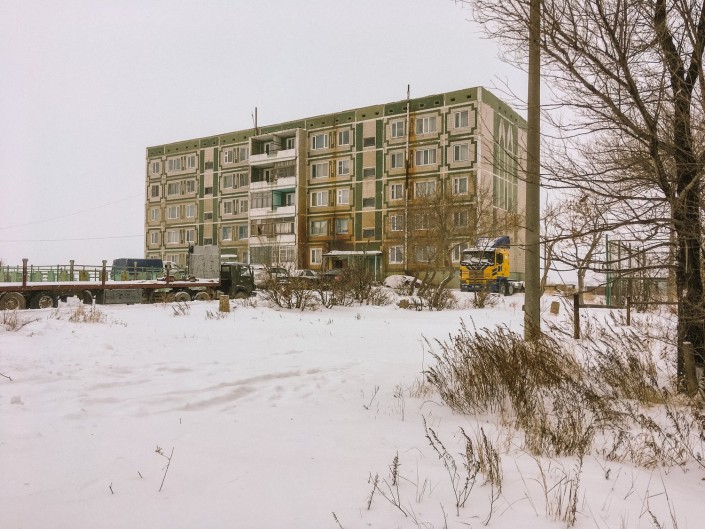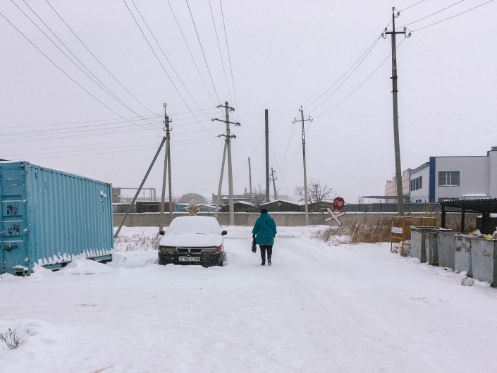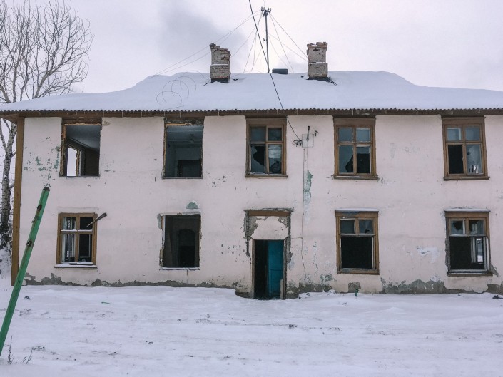 Если весной мы, несмотря на грязь, смогли пройти пешком к местным домам, то теперь, когда выпал снег, у нас это не получилось.