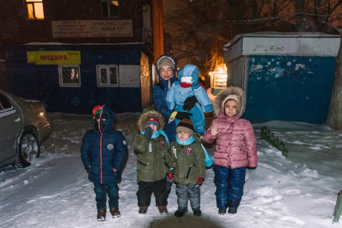 Женщину зовут Алима, у нее пятеро детей. Они снимают комнату в одном из местных общежитий за 35 тысяч тенге. Супруг Алимы работает охранником. "Все хорошие такие, молодцы, вот наше будущее", - восклицает Надежда Дмитриевна.