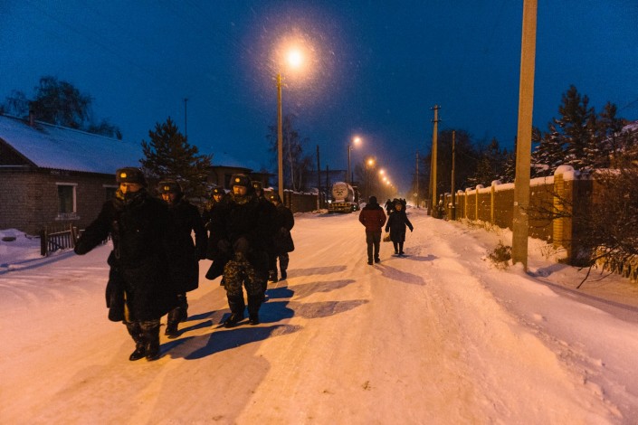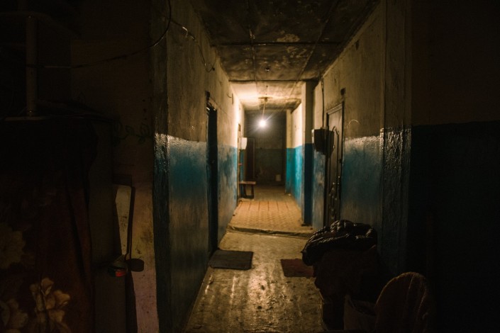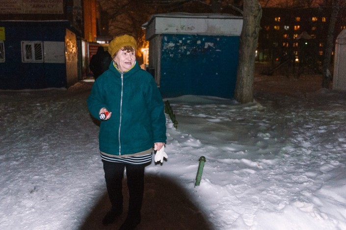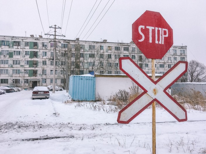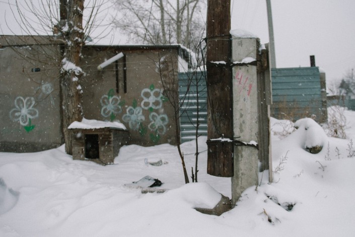 Еще недавно, осенью, чтобы добраться до автобусной остановки местным жителям приходилось пробираться через грязь и руины. Теперь на смену им пришли непролазные сугробы.