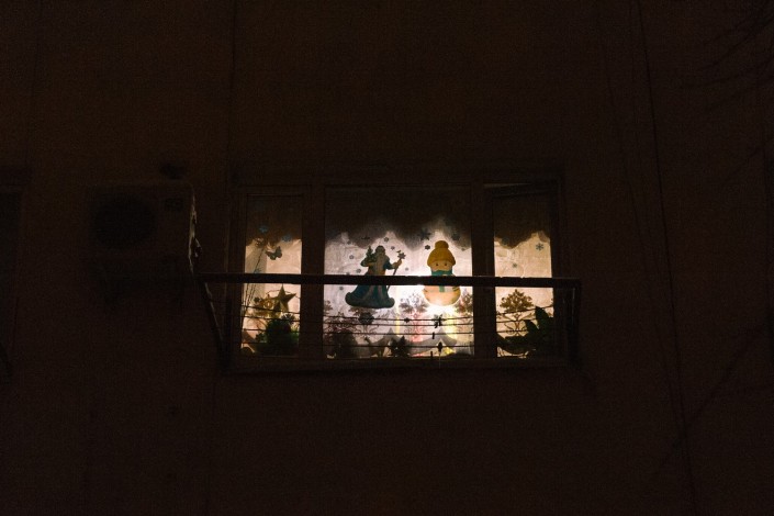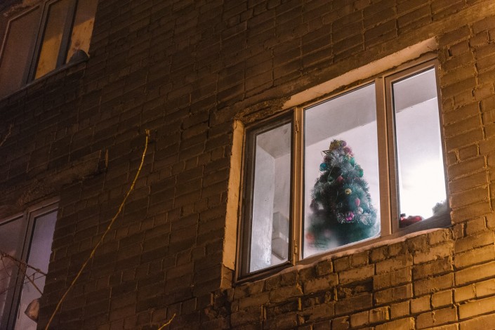 На Лесозаводе люди сами себе создают праздничное настроение, каждый в отдельно взятой квартире. Вон, на окна кто-то наклеил снежинки.