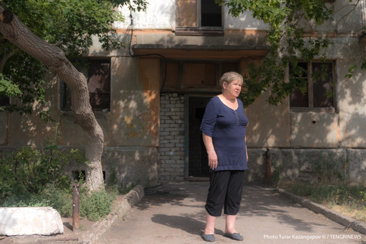 "Живу здесь с девяностых. На весь дом осталось только восемь квартир. Остальные все побросали, когда развал начался - кто в Германию поехал, кто в Россию. Теперь все продувается. Своими силами, что можем, забиваем - где двери, где какие-то картонки, фанерки", - рассказывает жительница.