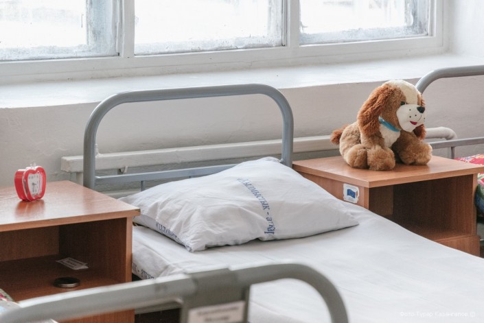 В комнате, которая больше напоминала больничную палату, женщина укачивала на руках проснувшегося сына. Перед тем, как провести нас к осужденной, сотрудники колонии предупредили, что она вправе не отвечать на вопросы и может отказать в фотосъемке.